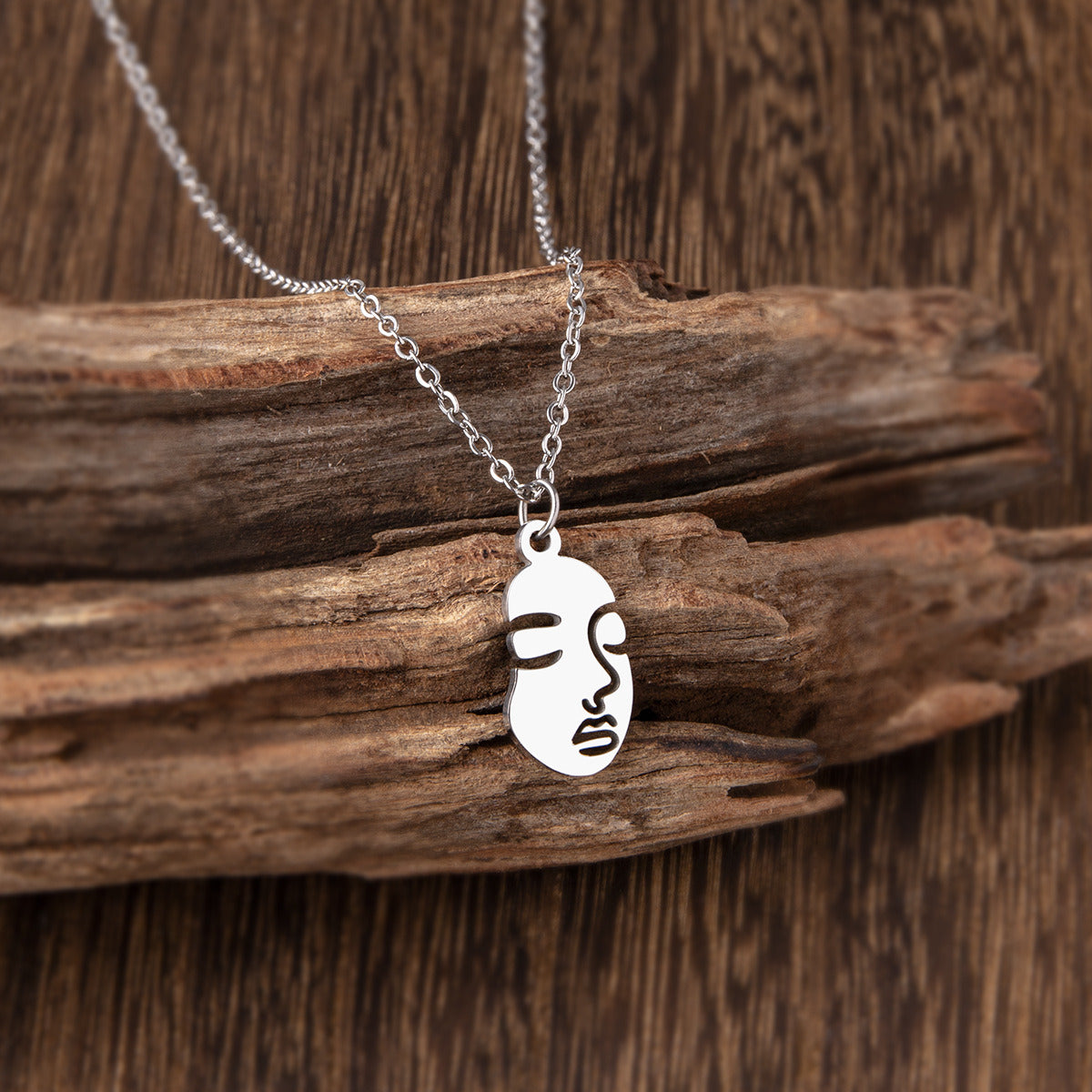 European And American Fashion Abstract Stainless Steel Face Necklace