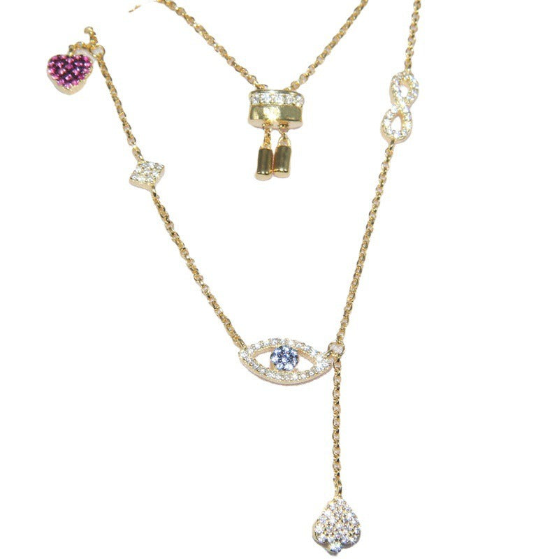 Gold Dripping Zircon Fatima Hand Minority Demon Eye Clavicle Chain Female
