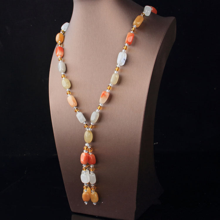 Women's Fashion Simple Gold Jade Necklace Sweater Chain