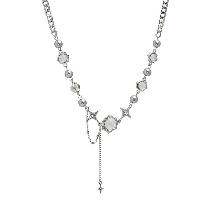 Moonlight Zirconia Cross Tassel Titanium Necklace