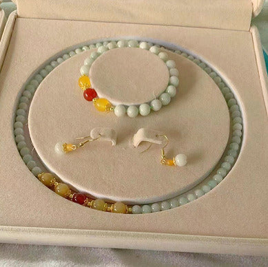 Freshwater Pearl Necklace Set Emerald A Cargo Three-piece Set
