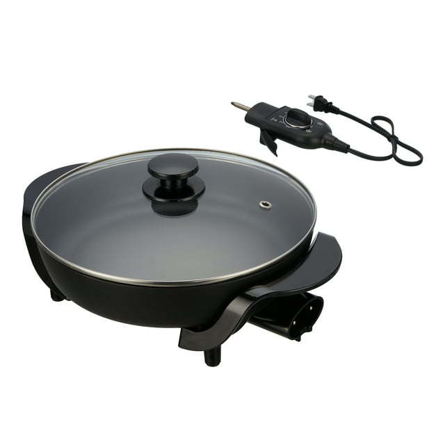 12" Round Nonstick Electric Skillet with Glass Cover, Black