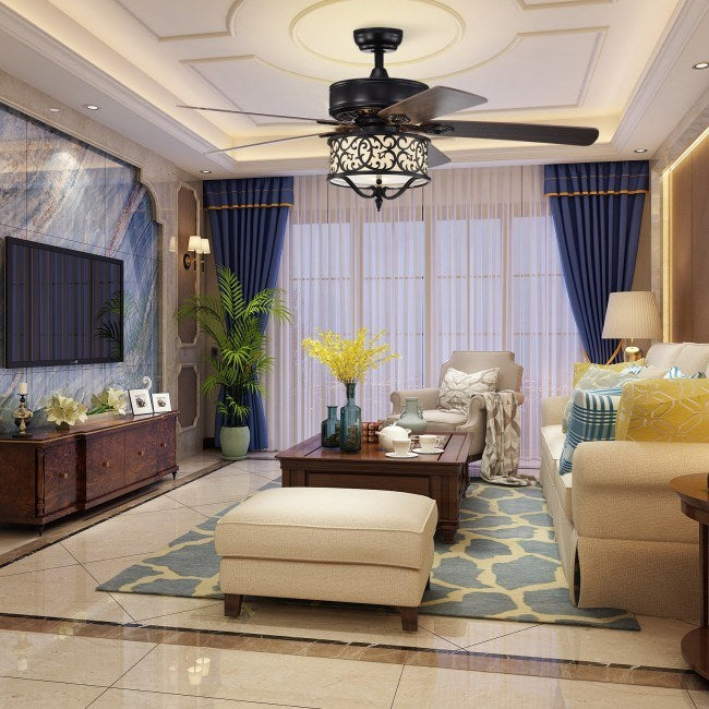 52 Inches Light Retro Ceiling Fan with Reversible Blades