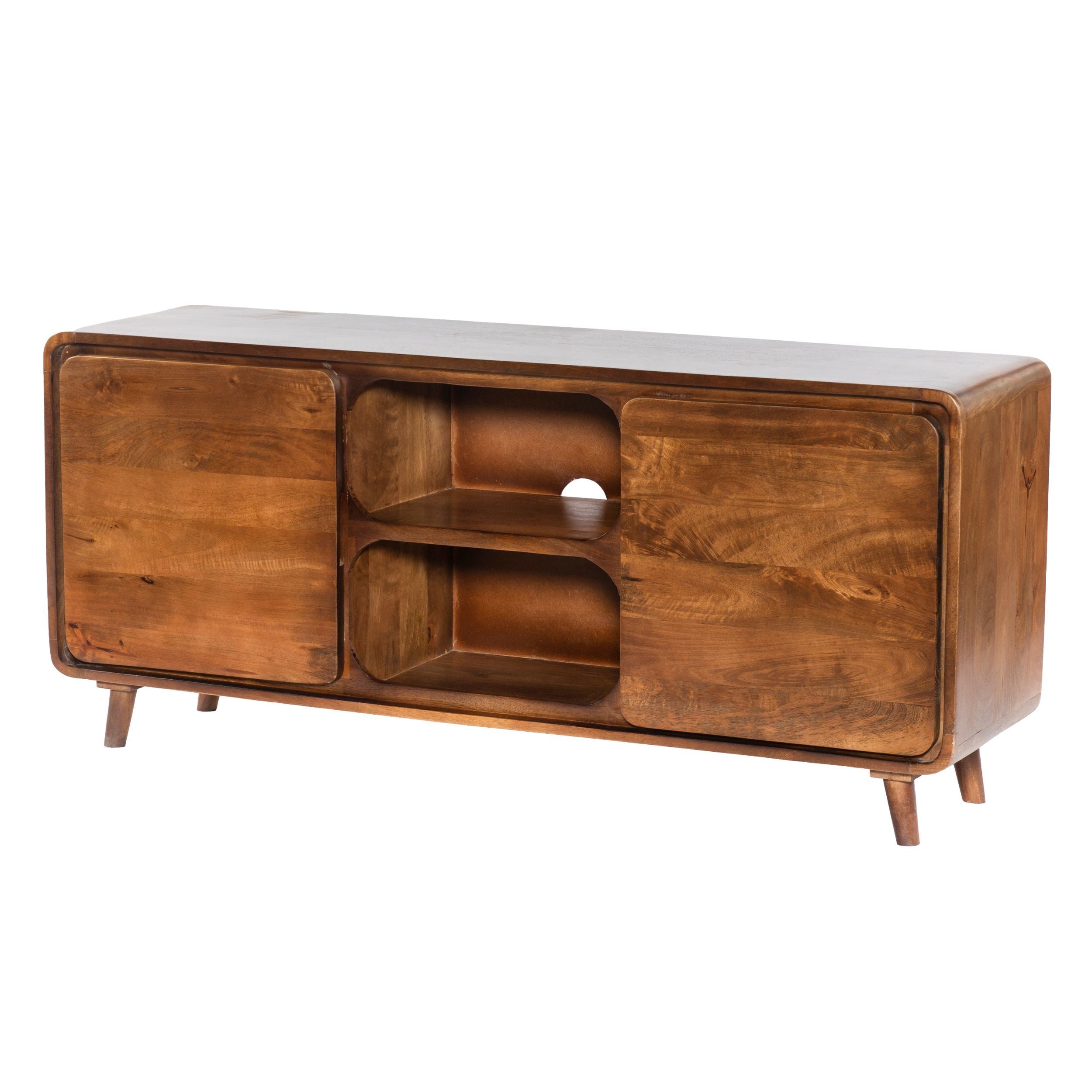 55 Inch TV Media Entertainment Center Console, Mango Wood, 2 Doors, Warm Brown