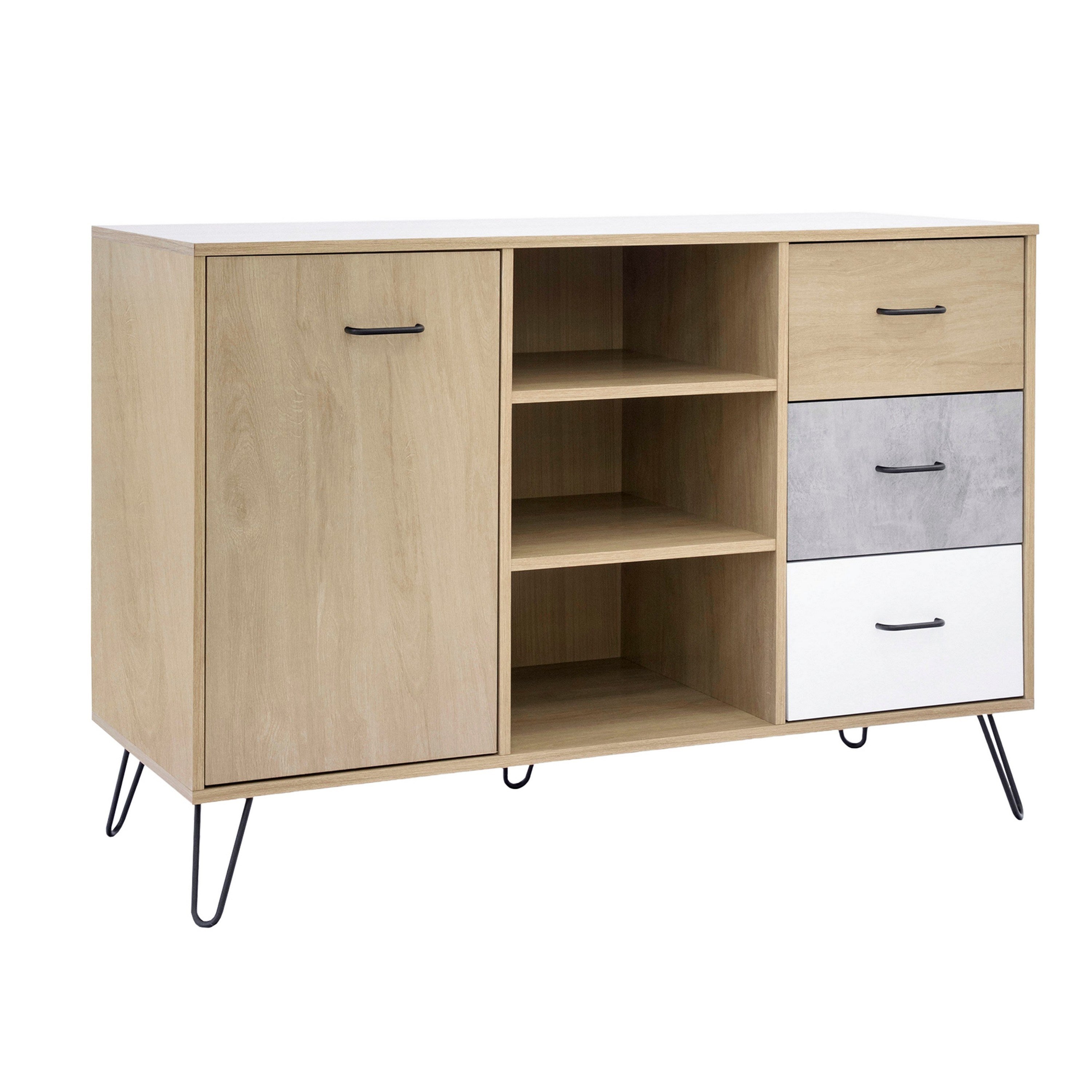 49 Inch Sideboard Buffet Console Cabinet with 3 Drawers, Oak Brown