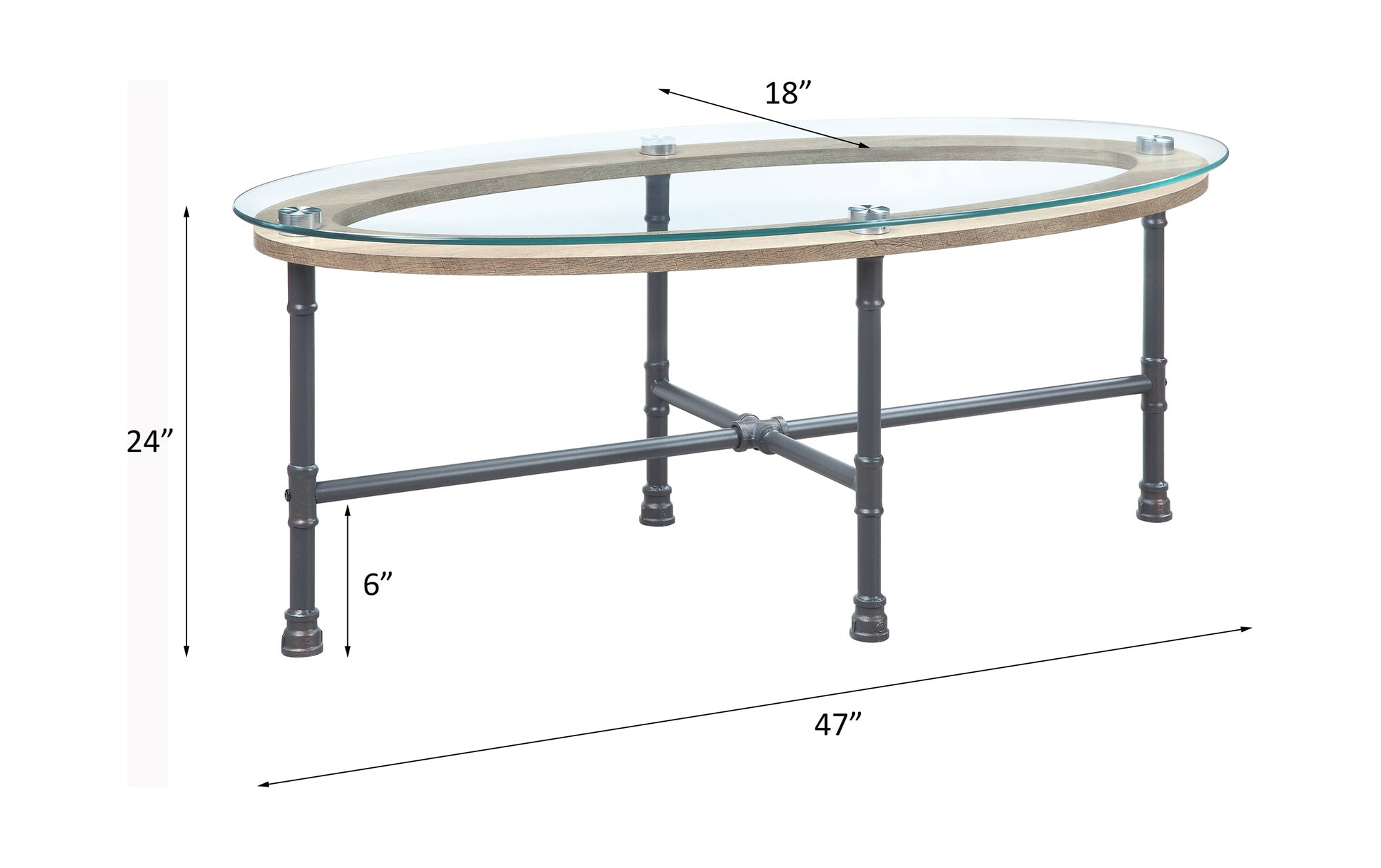 ACME Brantley Coffee Table in Clear Glass & Sandy Gray Finish LV00435