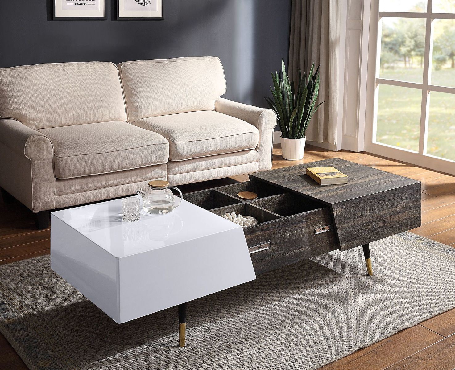 Orion Coffee Table; White High Gloss & Rustic Oak