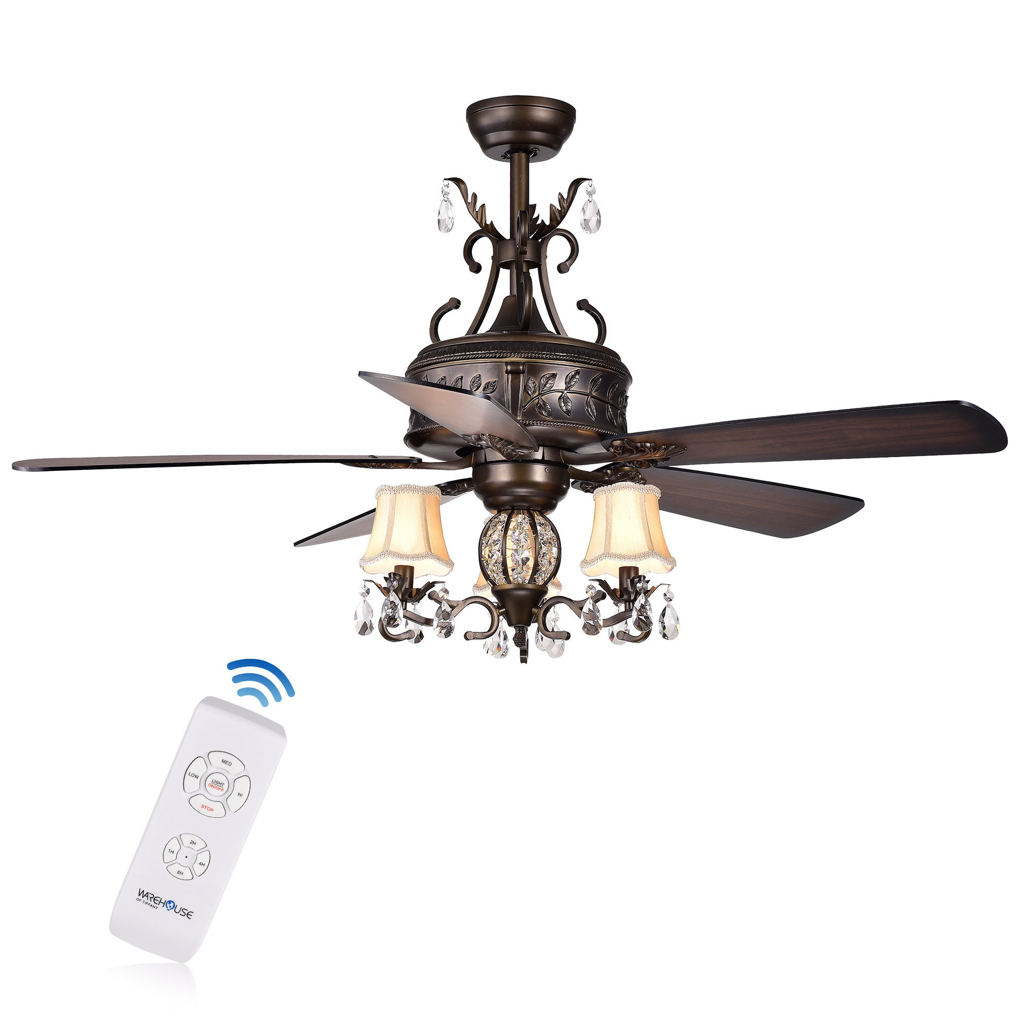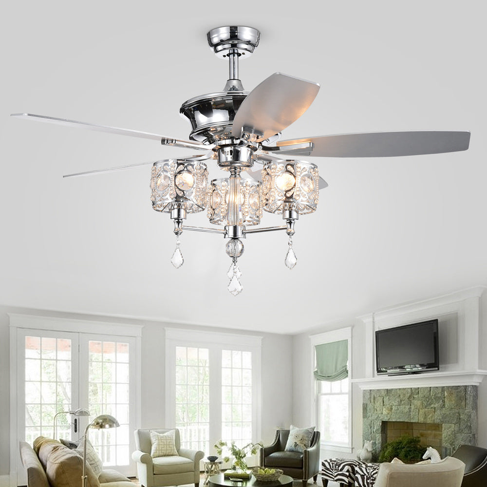 Bryanya 5-blade 52-inch Chrome Lighted Ceiling Fans with Crystal Shade