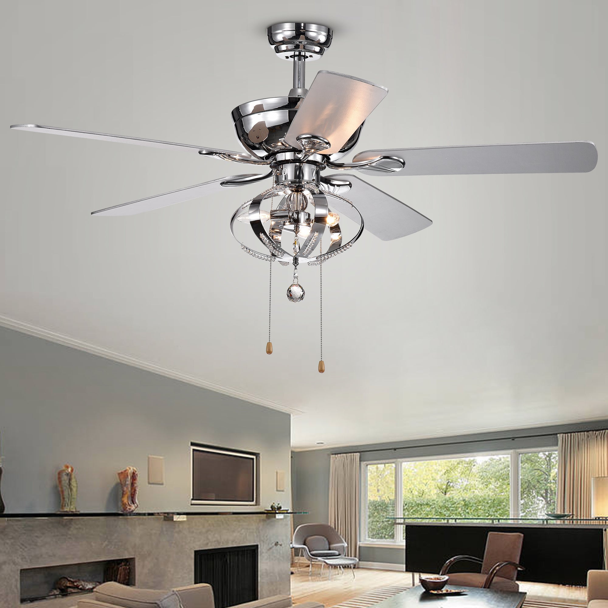 Walter Dual Lamp Chrome 52-inch Lighted Ceiling Fan w Crystal Shades