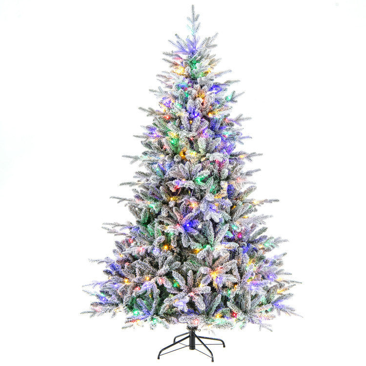 4.5/6/7 Feet Flocked Christmas Tree with 8 Lighting Modes and Multi-Color LED Lights