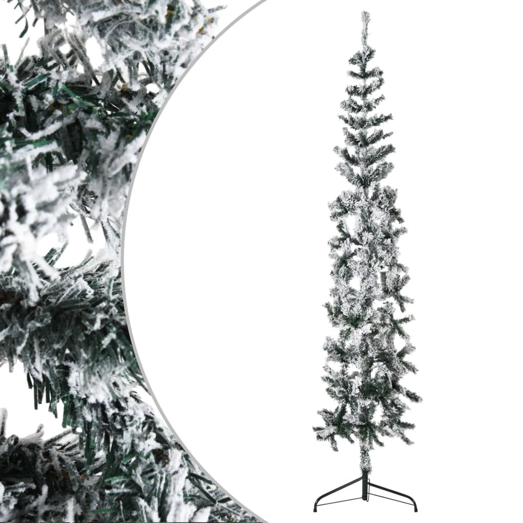 Artificial Slim Christmas Tree with Flocked Snow 7 ft PVC&PE