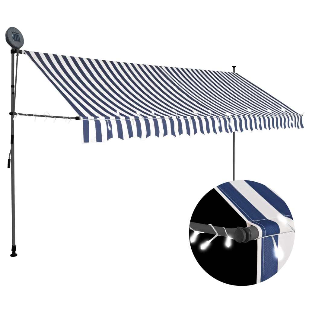 Manual Retractable Awning with LED 157.5" Blue and White