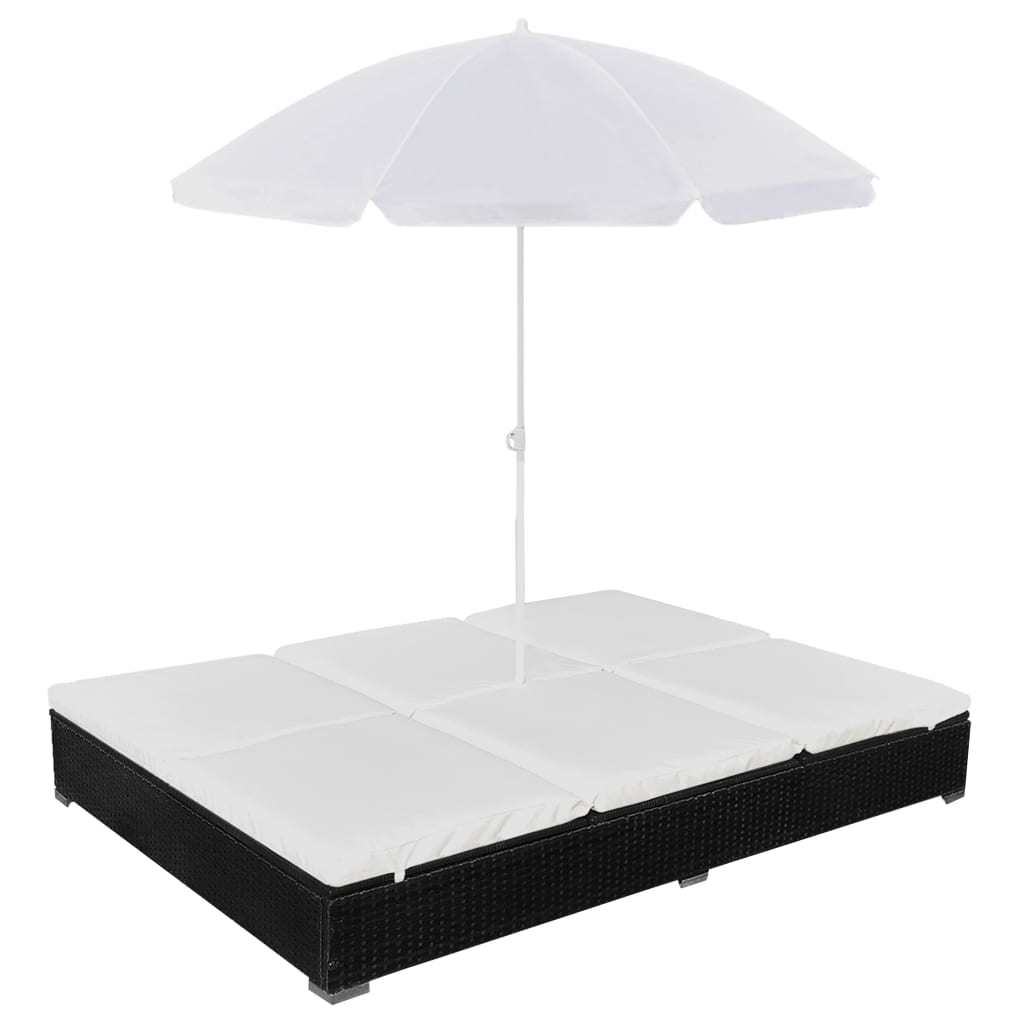 Patio Lounge Bed with Umbrella Poly Rattan Black