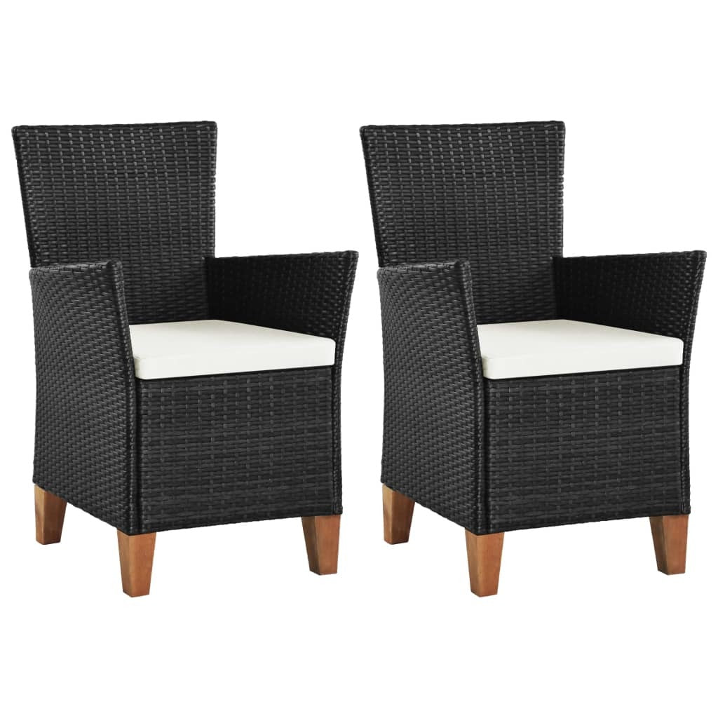 Patio Chairs with Cushions 2 pcs Poly Rattan Black