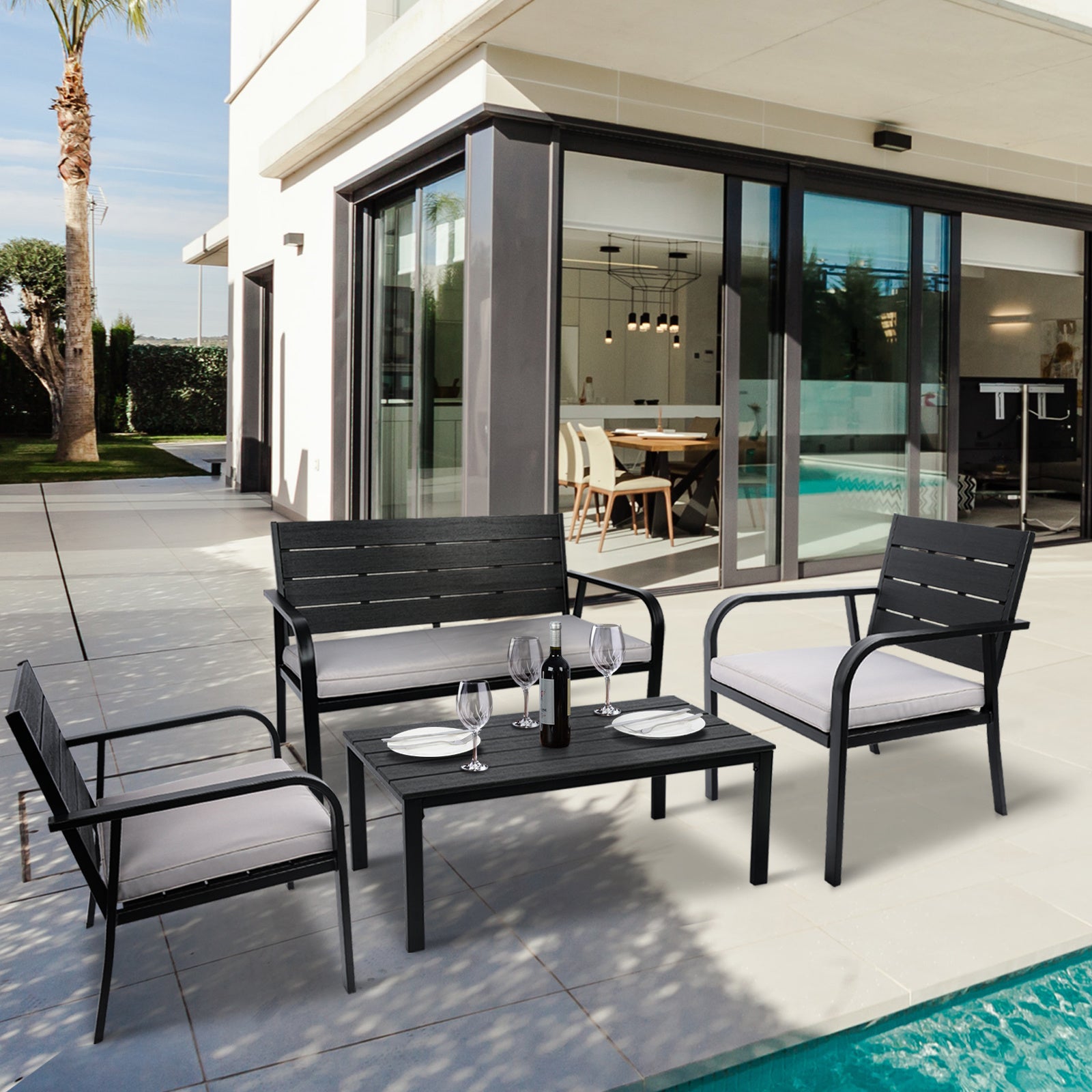 Patio Coffee Table Black 23.6"x23.6"x13.8" Steel
