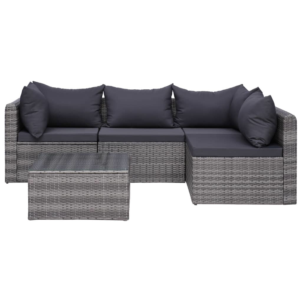 5 Piece Patio Sofa Set with Cushions & Pillows Poly Rattan Gray