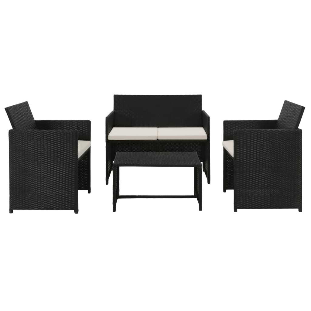 4 Piece Patio Lounge with Cushions Set Poly Rattan Black