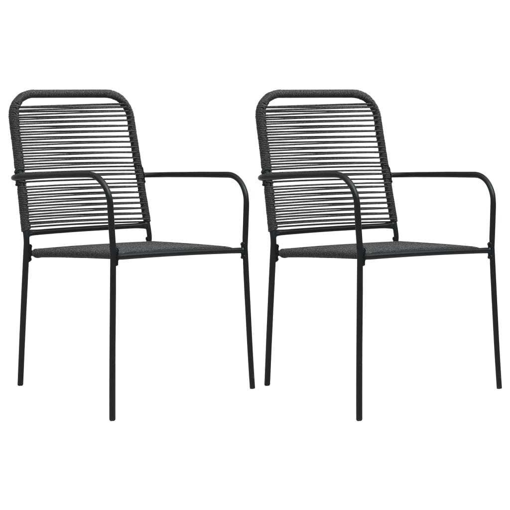 Patio Chairs 2 pcs Cotton Rope and Steel Black