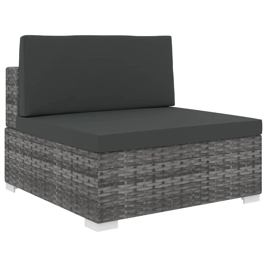 Sectional Middle Seat with Cushions Poly Rattan Gray