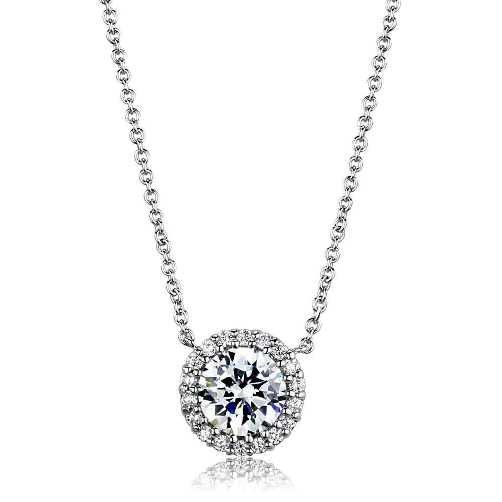 3W843 - Rhodium Brass Chain Pendant with AAA Grade CZ in Clear