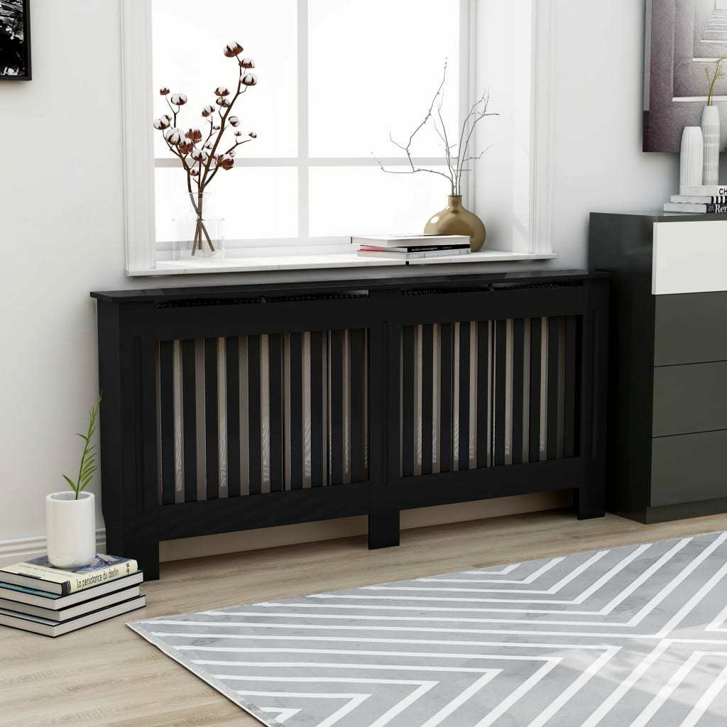 Radiator Cover Black 67.7"x7.5"x31.9" MDF