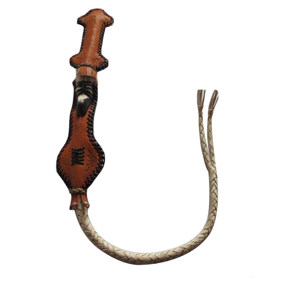 60cm Short Braided Whip Riding Crop, Black and Brown