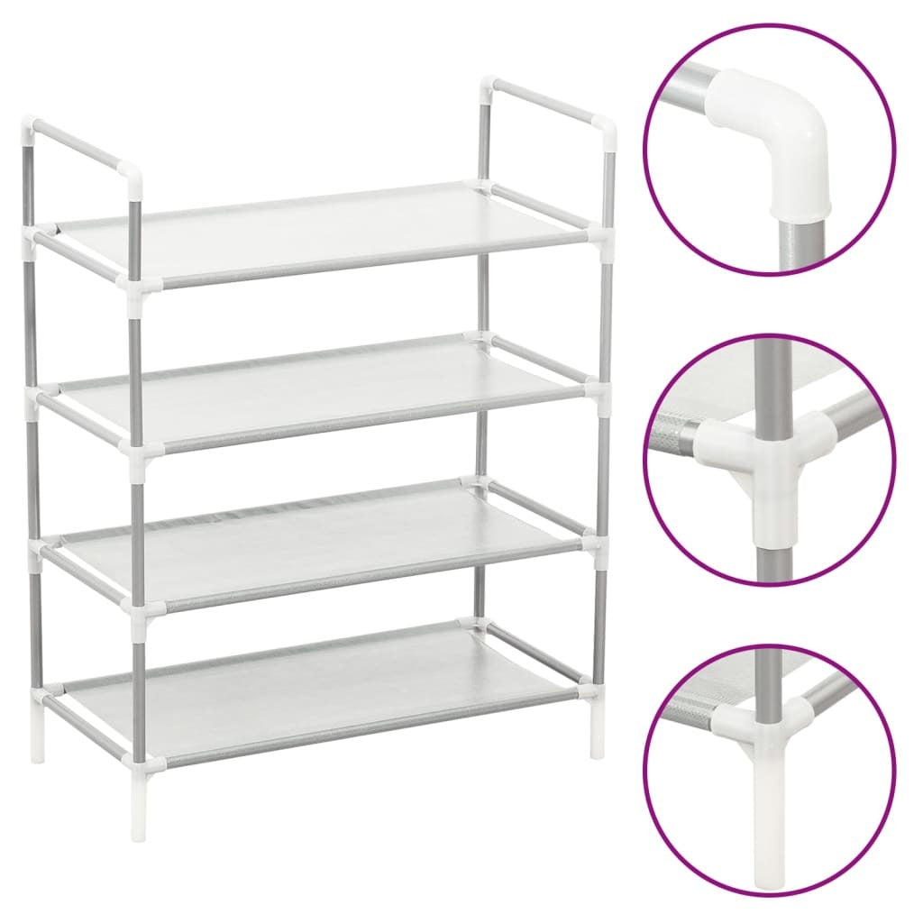 Shoe Rack with 4 Shelves Metal and Non-woven Fabric Silver
