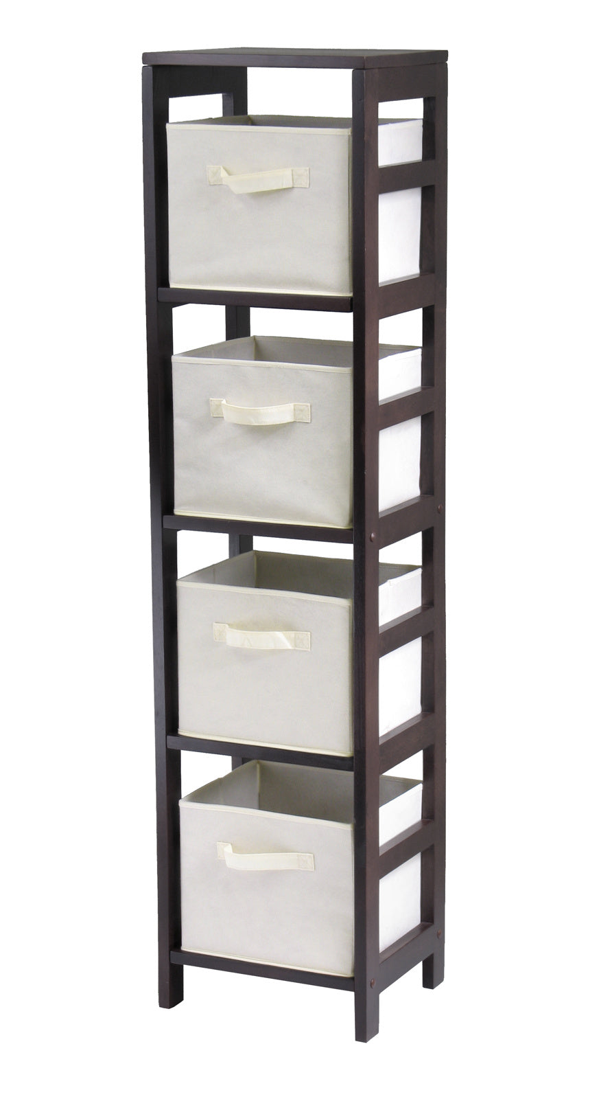 Capri 4-Section N Storage Shelf with 4 Foldable Beige Fabric Baskets