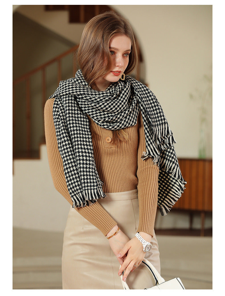 Women's Rhombus Plaid Print Scarf Warm And Thick Mid-length Ladies