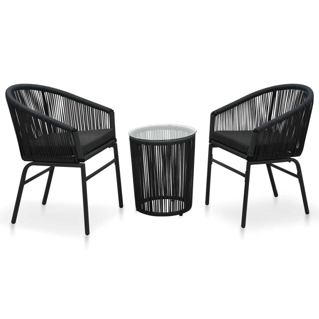 3 Piece Bistro Set with Cushions PE Rattan Black