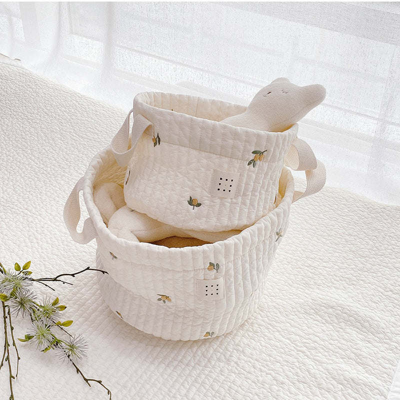 Baby Embroidered Pattern Baby Bottle Storage Basket