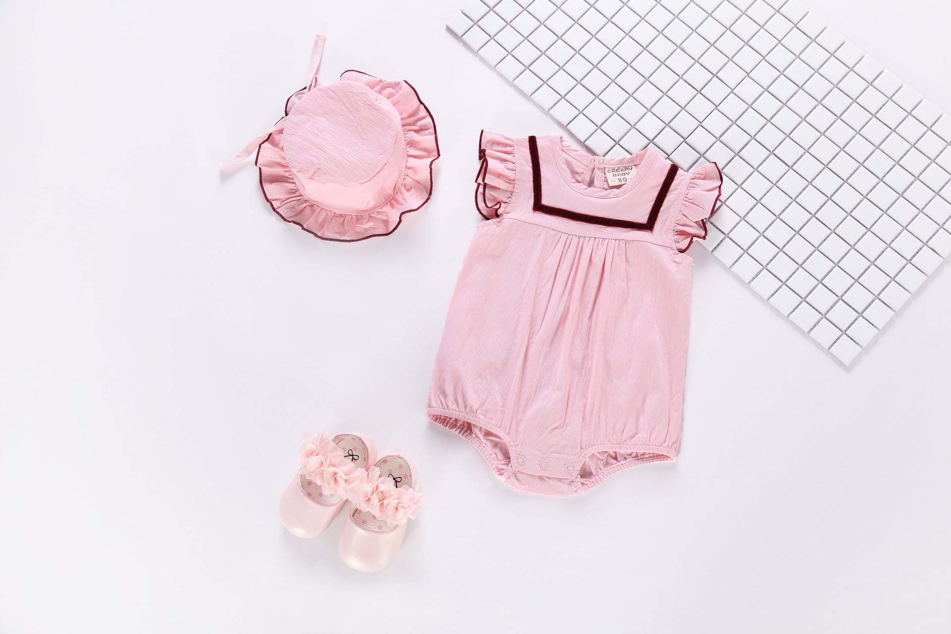 Baby 1pcs Contrast Tape Patched Frill Trim Sleeveless Onesies & Hat