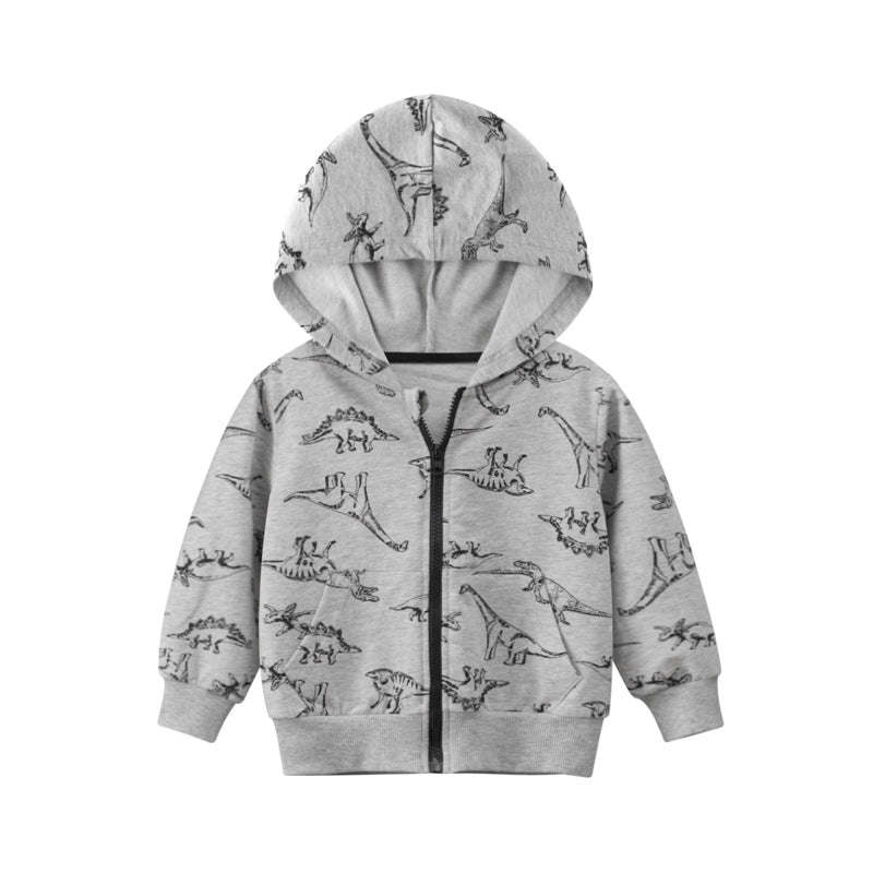 Baby Boy Dinosaur Pattern Zipper Front Coat With Hat