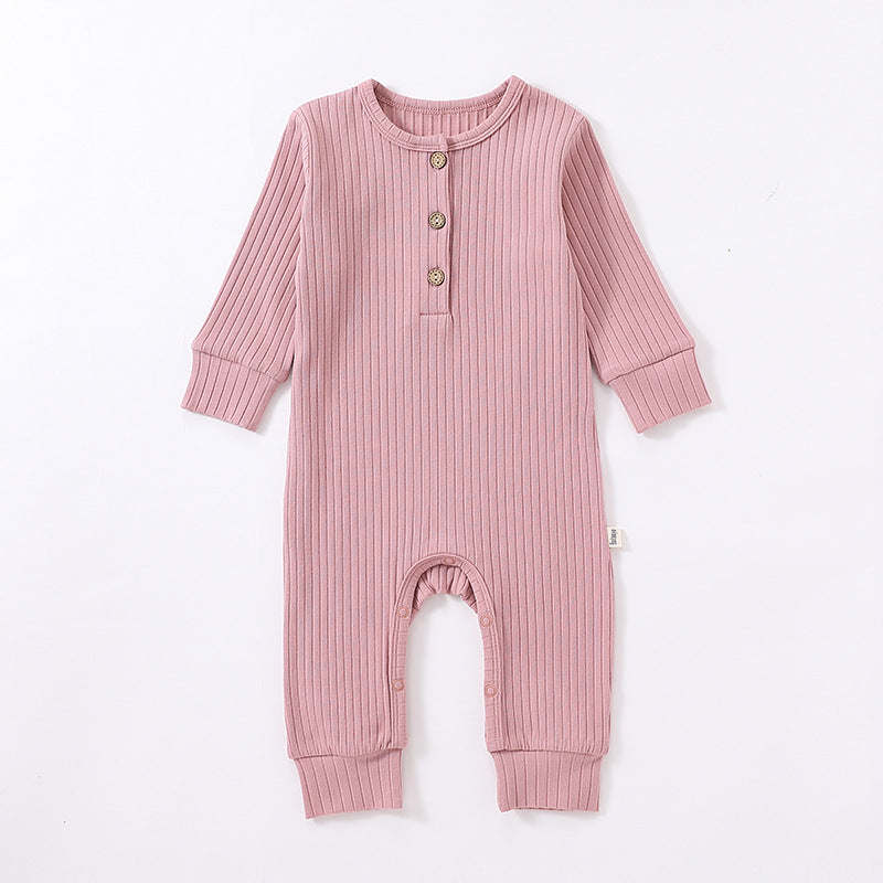 Baby Boy And Girl Solid Color Quarter Button Design Jumpsuit