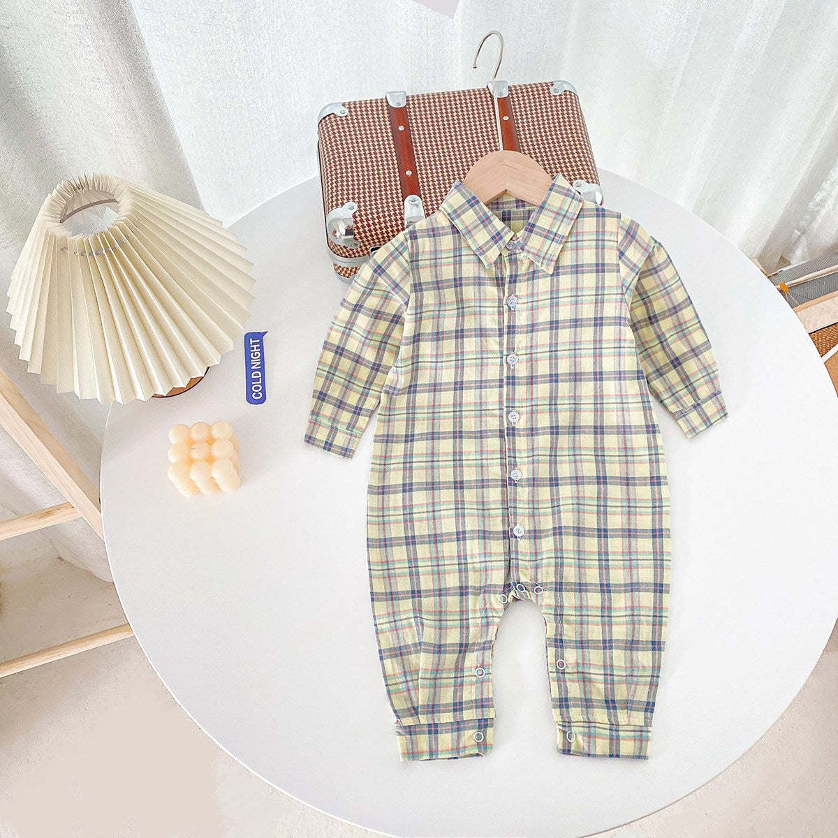 Baby Boy Classic Plaid Pattern Lapel Design Long Sleeve Rompers