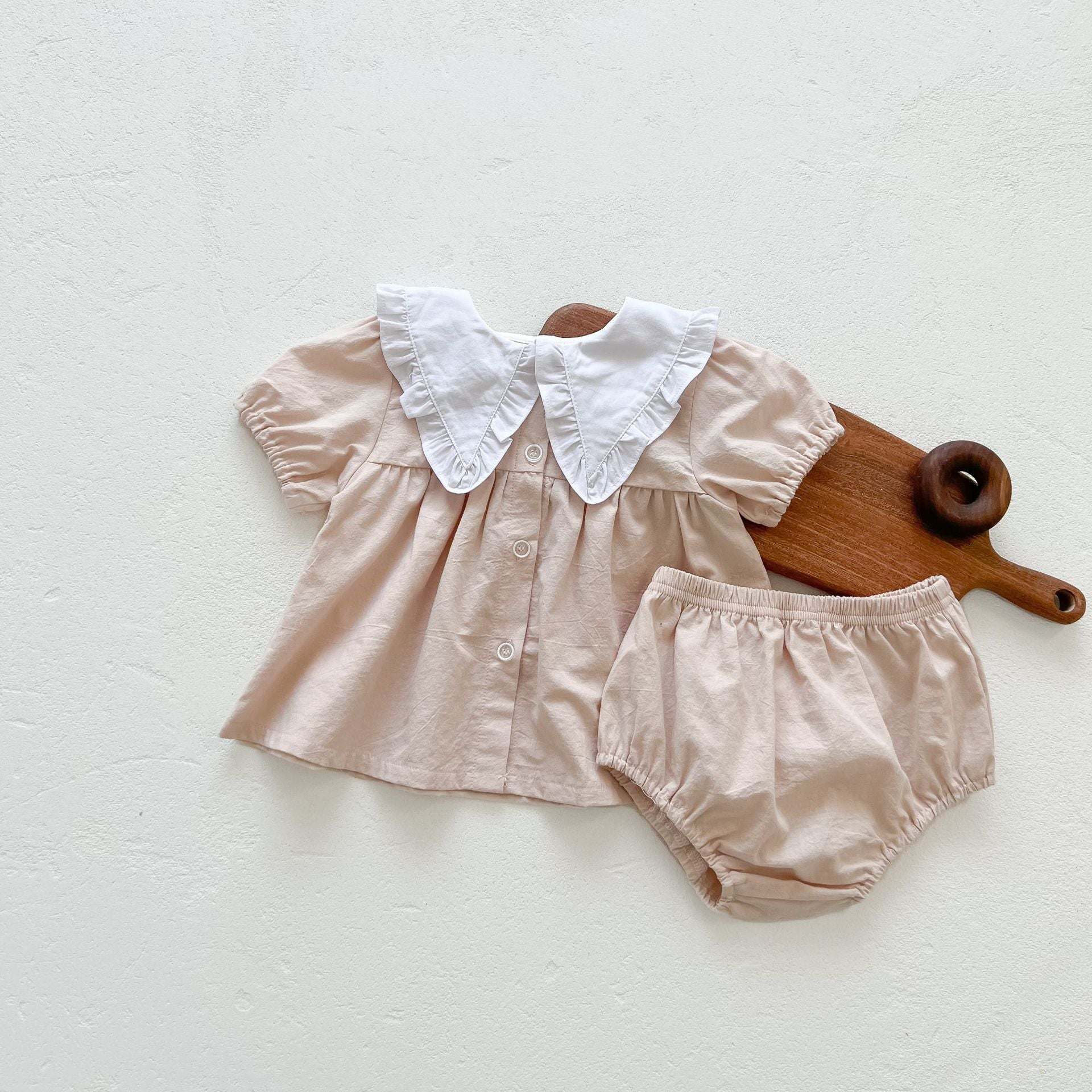 Baby Girls Lapel Collar Short Sleeve Top Combo Short Pants In Sets