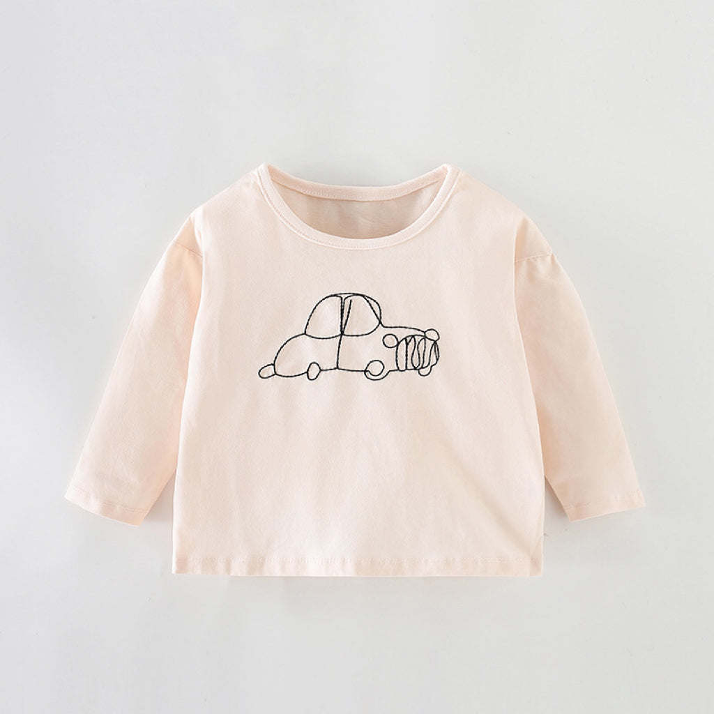 Baby Girl Car Emboidered Graphic Long Sleeve Loose Shirt