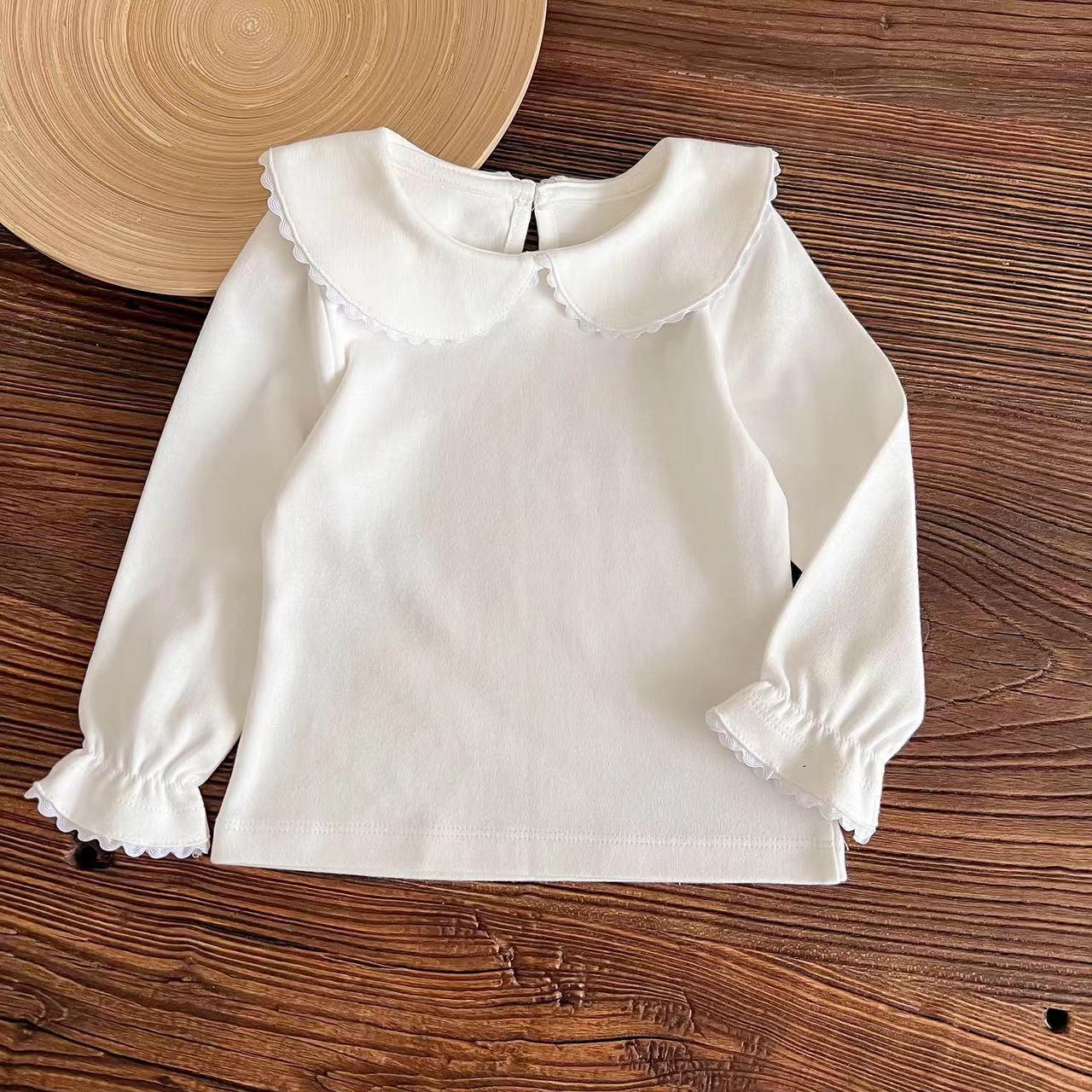 Baby Girl Solid White Doll Neck Cotton Shirt In Autumn