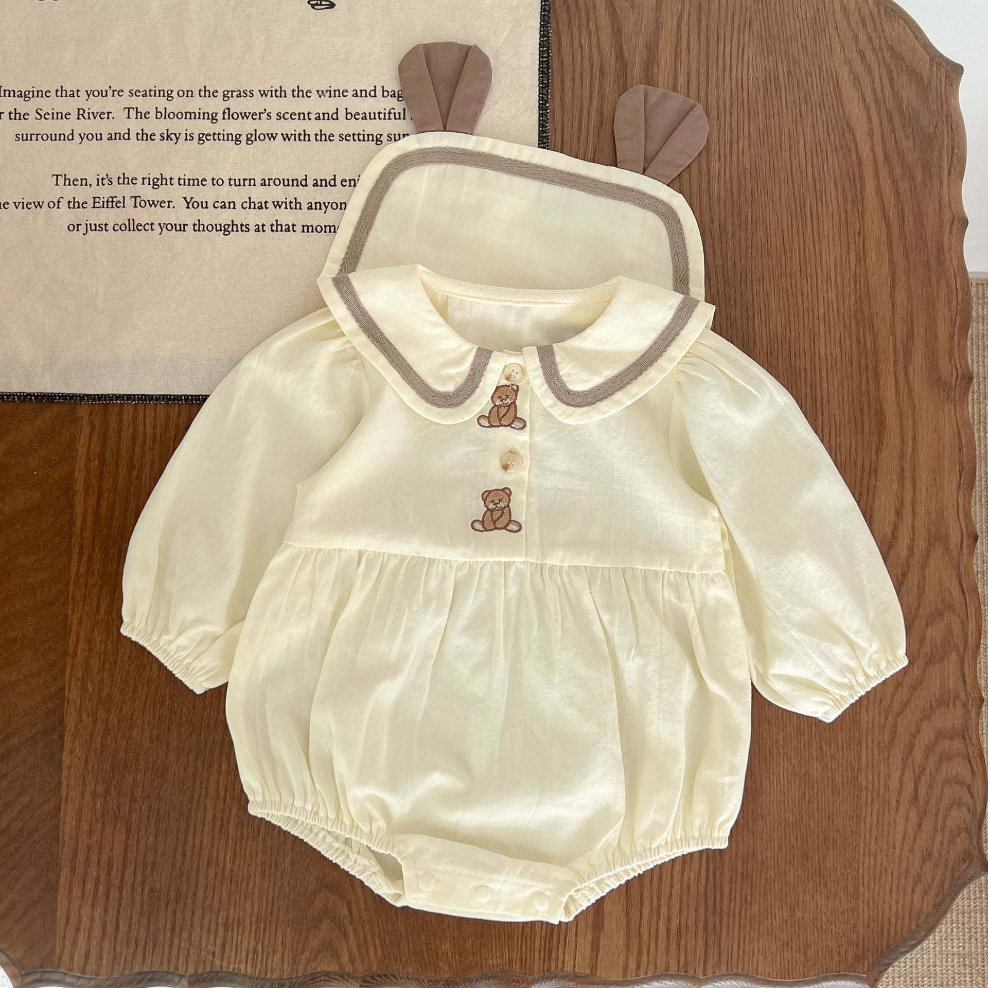 Baby Bear Embroidered Pattern Sailor Collar Long Onesie