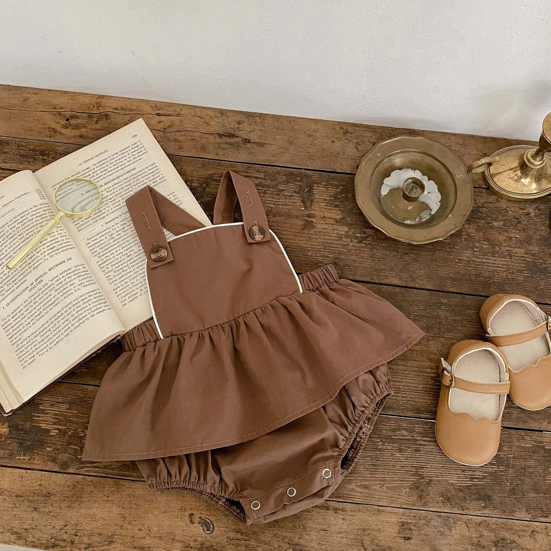 Baby Girl Solid Color Doll Neck Shirt Strap Onesies