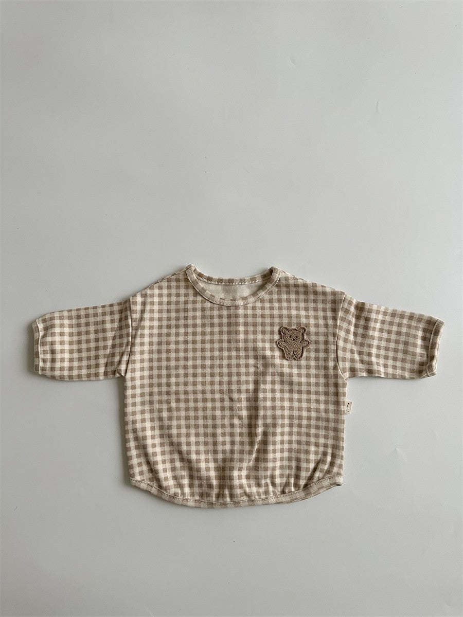 Baby Dot Pattern Cartoon Bear Patched Design Cotton Shirt