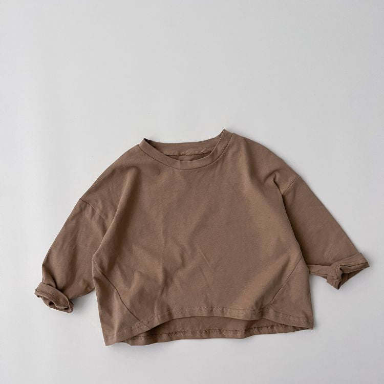 Baby Solid Color Crewneck Long Sleeve Soft Cotton Basic Shirt