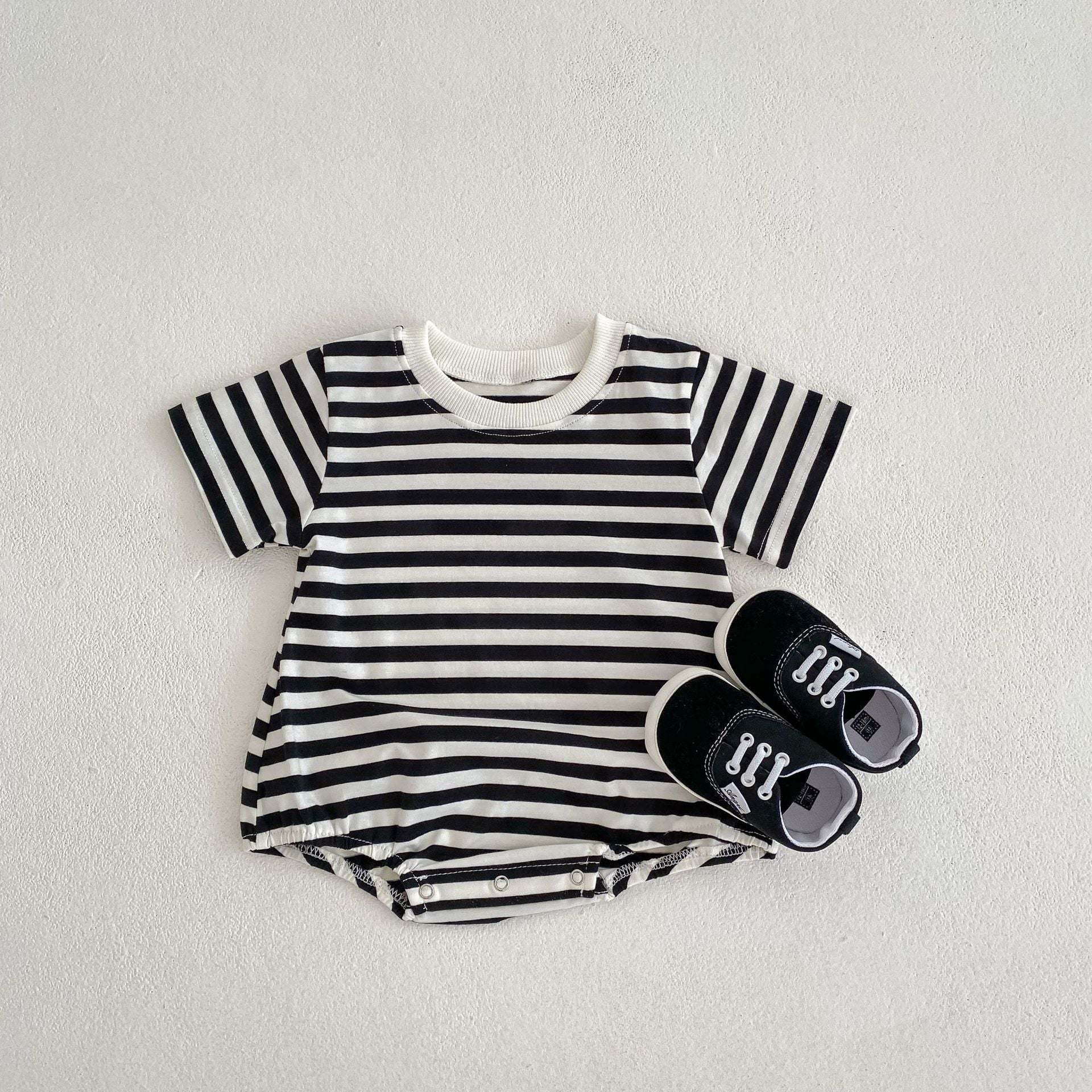 Baby Girl Striped Pattern Short Sleeve Crewneck Summer Onesies