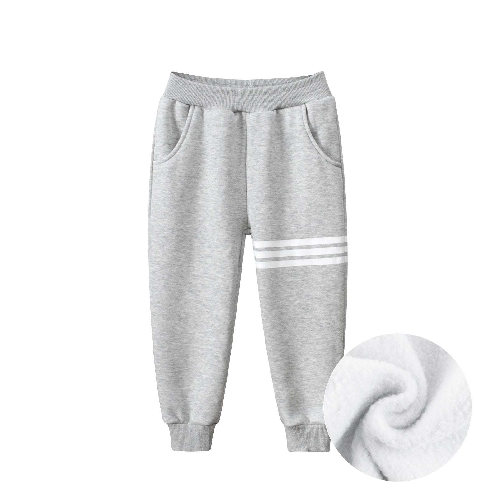 Baby Boy Solid Color Striped Design Fleece Thickened Trousers