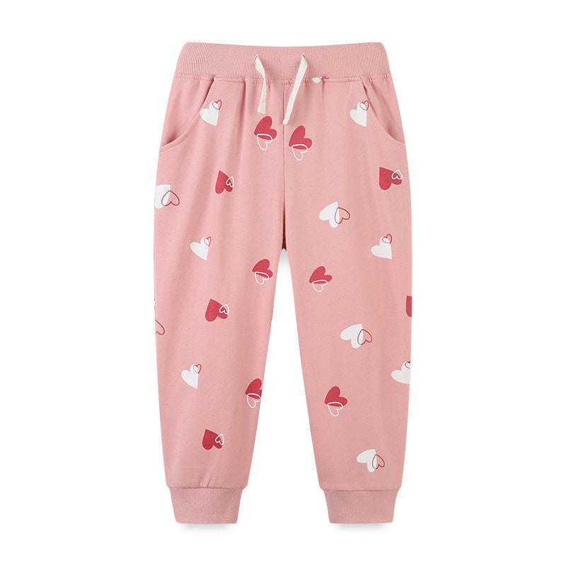 Baby Girl Heart Print Pattern Solid Color Cute Sport Trousers