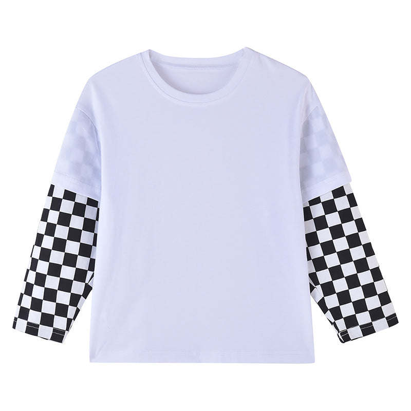 Baby Boy And Girl Plaid Pattern Fake 1 Pieces Sleeve Design Shirt