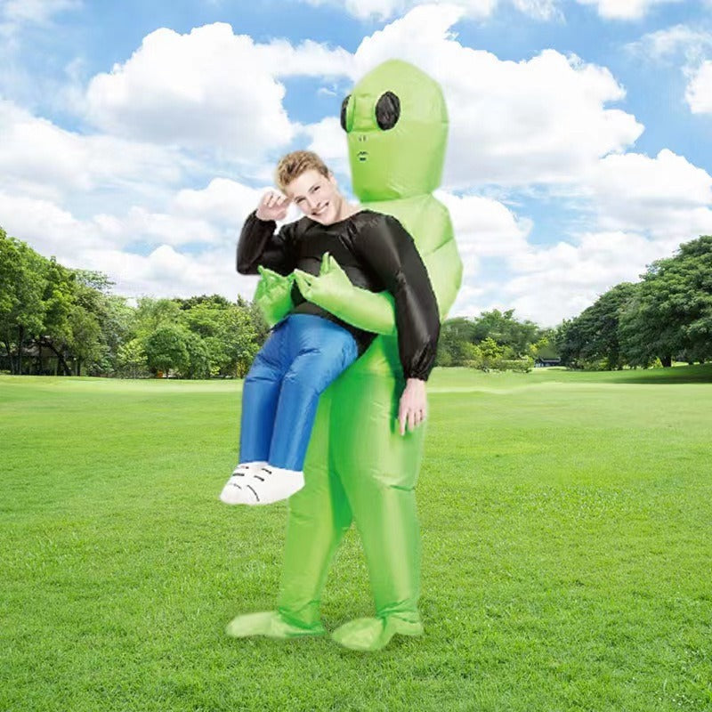 Green Alien Carrying Human Costume Inflatable Funny Blow Up Suit Cosplay For