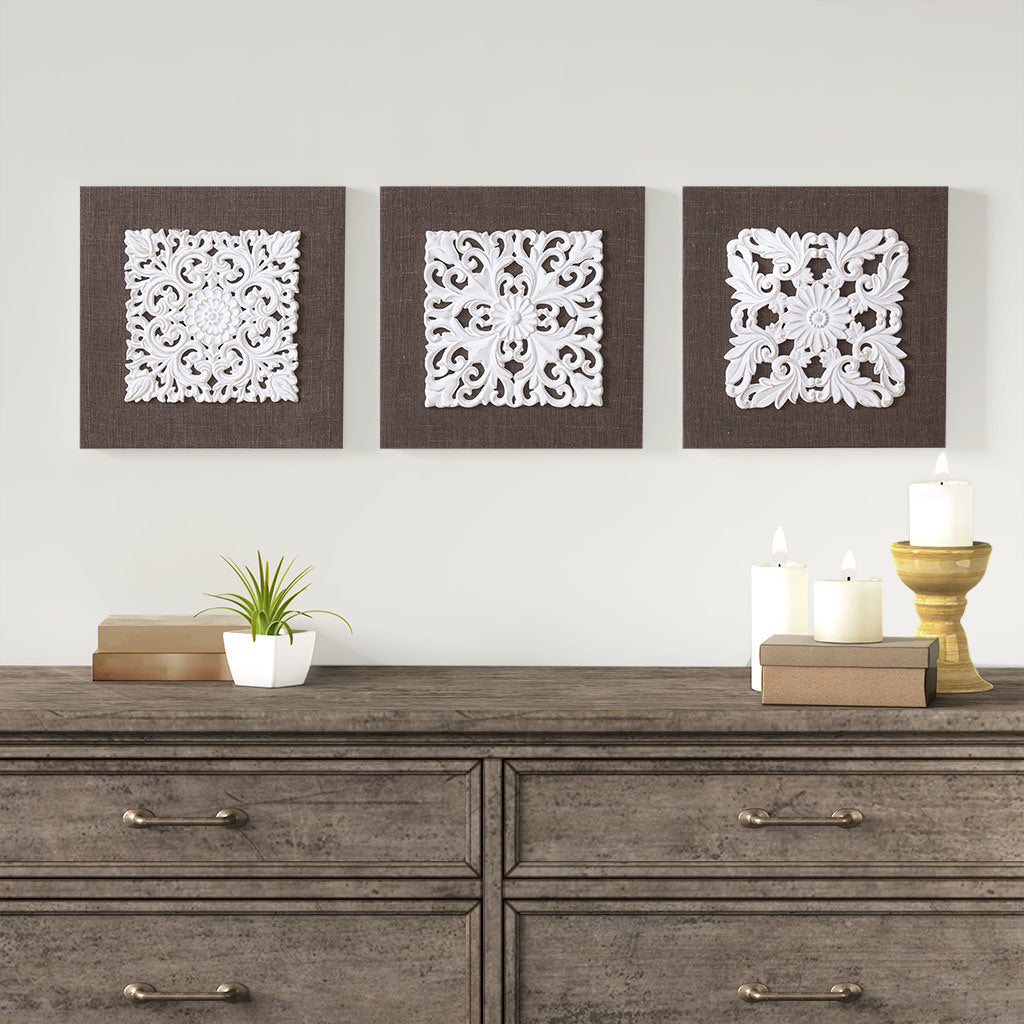 3D Embellished Linen Canvas 3 Piece Wall Art