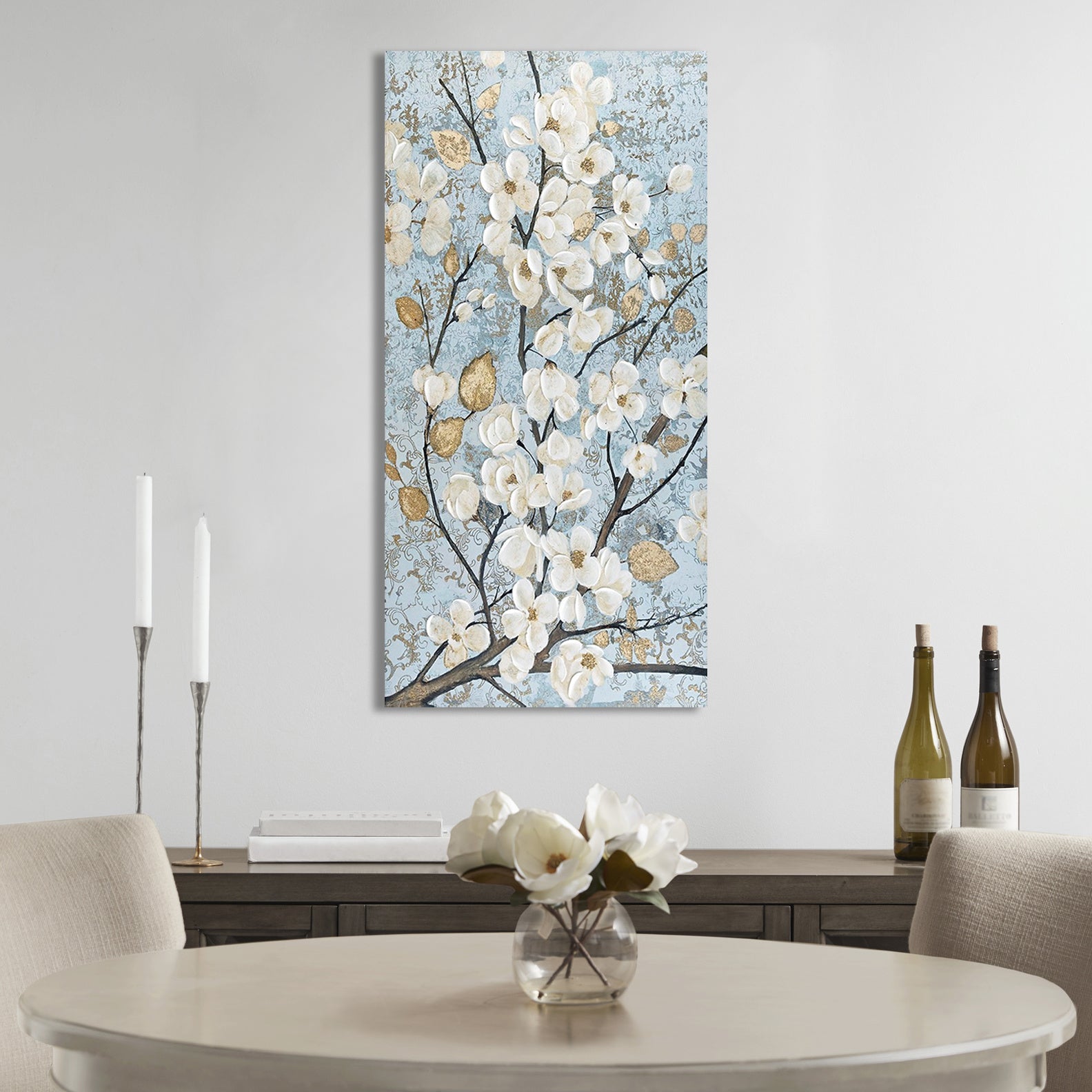 Gold Foil and Hand Embellished Floral Canvas Wall Art