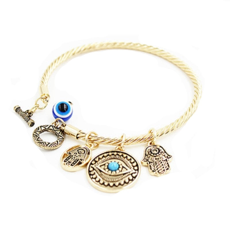 Twisted Bracelet Womens Dangling Evil Eye and Hamsa Hand Charm